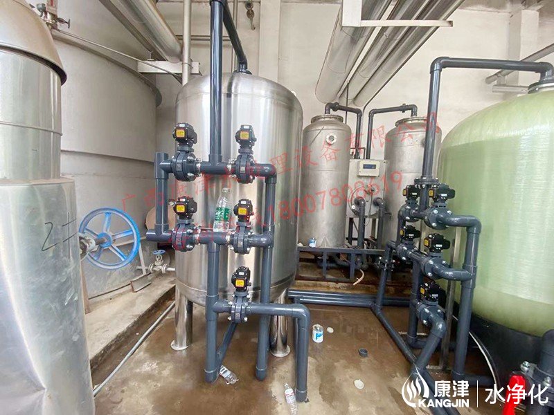 工藝流程:地下水+自來(lái)水-水箱-石英砂過(guò)濾器-軟化水設(shè)備1-軟化水設(shè)備2-精密過(guò)濾器-各用水點(diǎn)